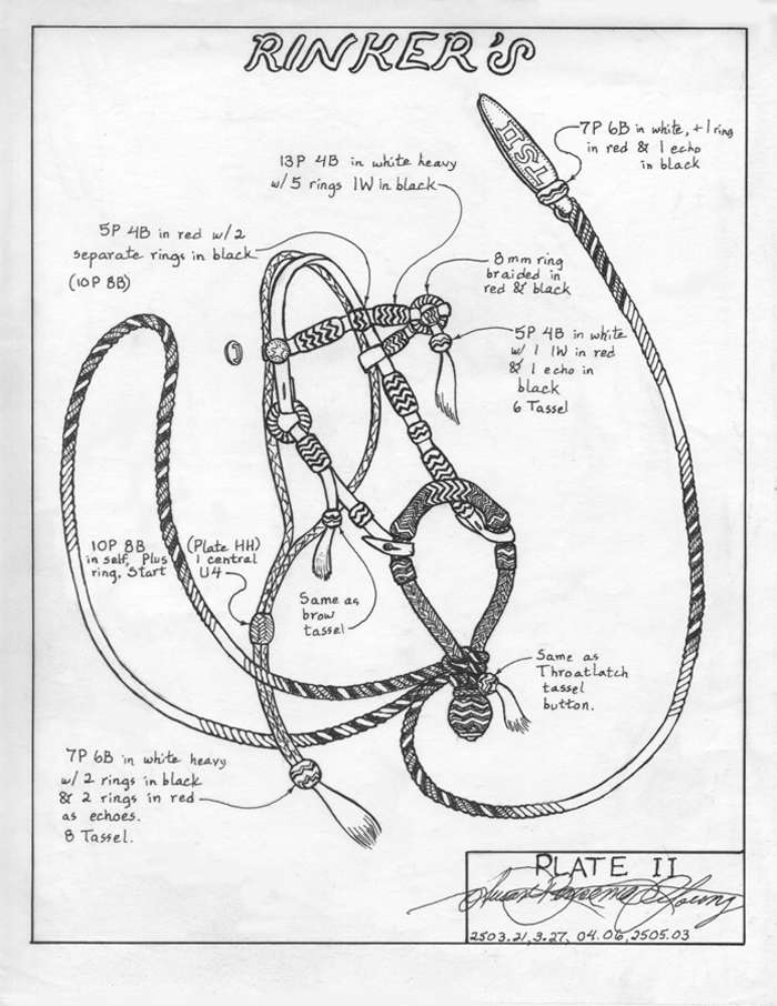 Duke's Hackamore, Chapter 1, is the oldest of the 8, one of the simplest pieces in the book (on the Adios). It has no braided buttons, but introduces tying the Fiador and rigging the Hackamore.