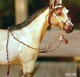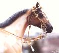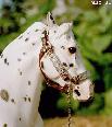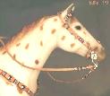 This is Malaguena's bridle, made in July 1995, in the first wave of flat braid discoveries. That was the week I learned how to do interweaves...This picture has been our flagship ever since this website was launched. Now it takes its chronological place, superceded by Campbell's... but never forgotten! |