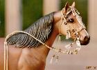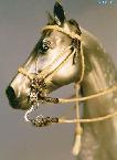 The second chapter in the story of this amazing bridle was its travels to Britain. Foolishly I placed a high value on it and shipped it off. After a long time, I heard that it had landed at her door---only to be turned away because of an unreasonably high tariff!! It actually came all the way back to me. I had the unusual chance to test and tighten my work again.....It was now decided to carry it to BreyerFest and personally hand it over to Mac & Vanessa of Horsing Around magazine. |