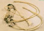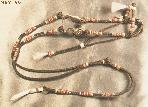 A brown sinew FBRB with red, white and sinew buttons. This bridle has an unusual number of buttons...most do not have so many. Finished 9901.26; owned by R. Nikolaidis. |