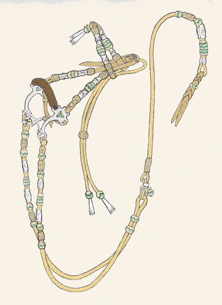 Duke's Hackamore, Chapter 1, is the oldest of the 8, one of the simplest pieces in the book (on the Adios). It has no braided buttons, but introduces tying the Fiador and rigging the Hackamore.