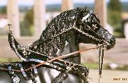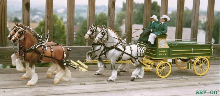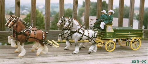 Updating, restoring, altering, customizing, rebuilding: no matter what you call it, it makes so much sense. It's cheaper and easier than buying new and it gives invaluable practice. Why make the job harder for yourself? Besides the fun of raising some piece of tack up to a higher level of detail, there is also knowledge to be gained about repair. Believe me, model tack needs repairing! just like its full size counterpart. The TSII has seen its full share of repair jobs --- it is always wonderful to spend time with old friends. This page tells the stories of several Parade sets and one Four-hitch of draft harness, all of them restored or rebuilt in some fashion.
